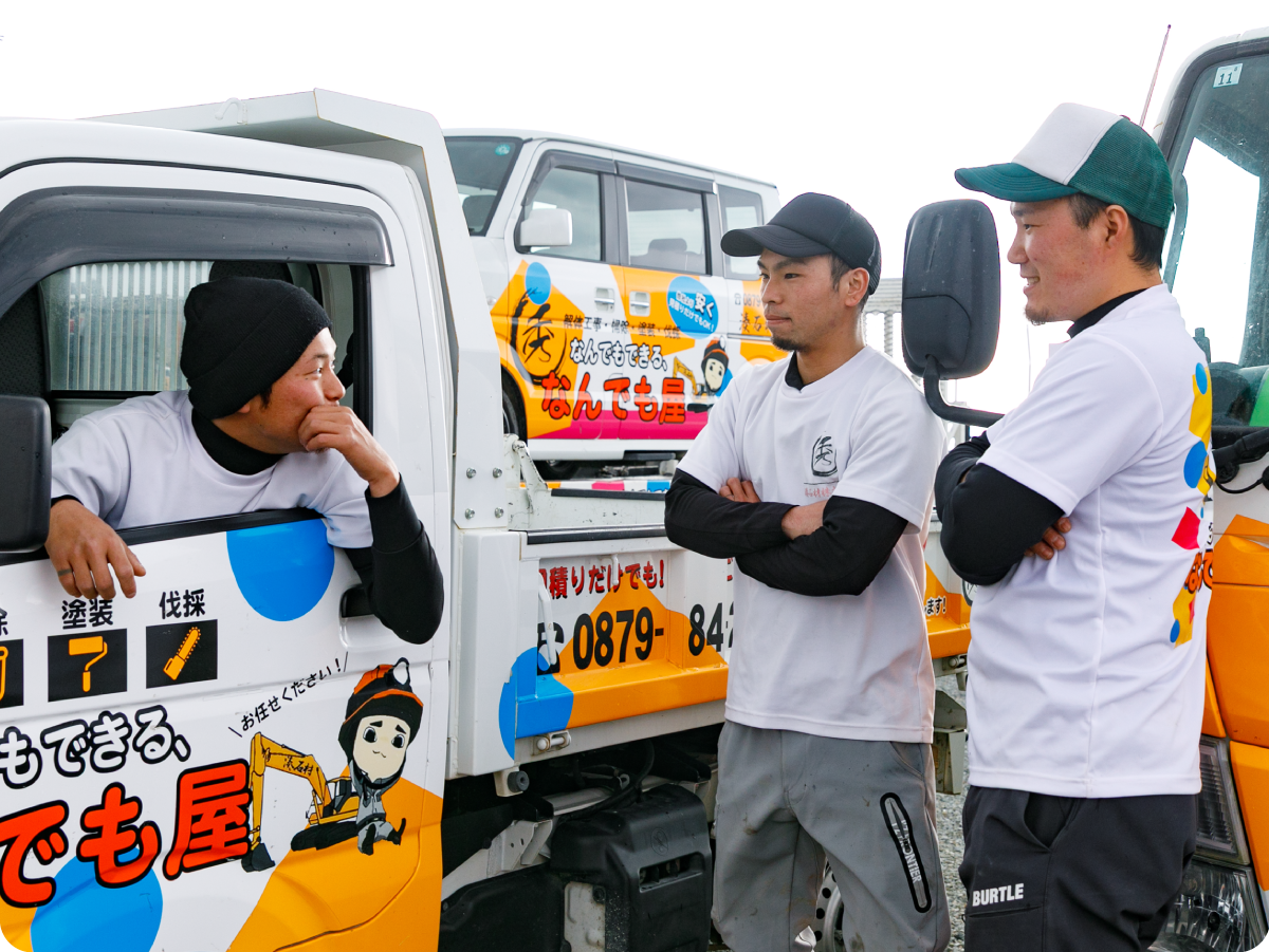 草刈りや片付け、家の修繕といった何でも屋の仕事から、住宅や倉庫の解体工事まで、幅広い依頼に対応しています。